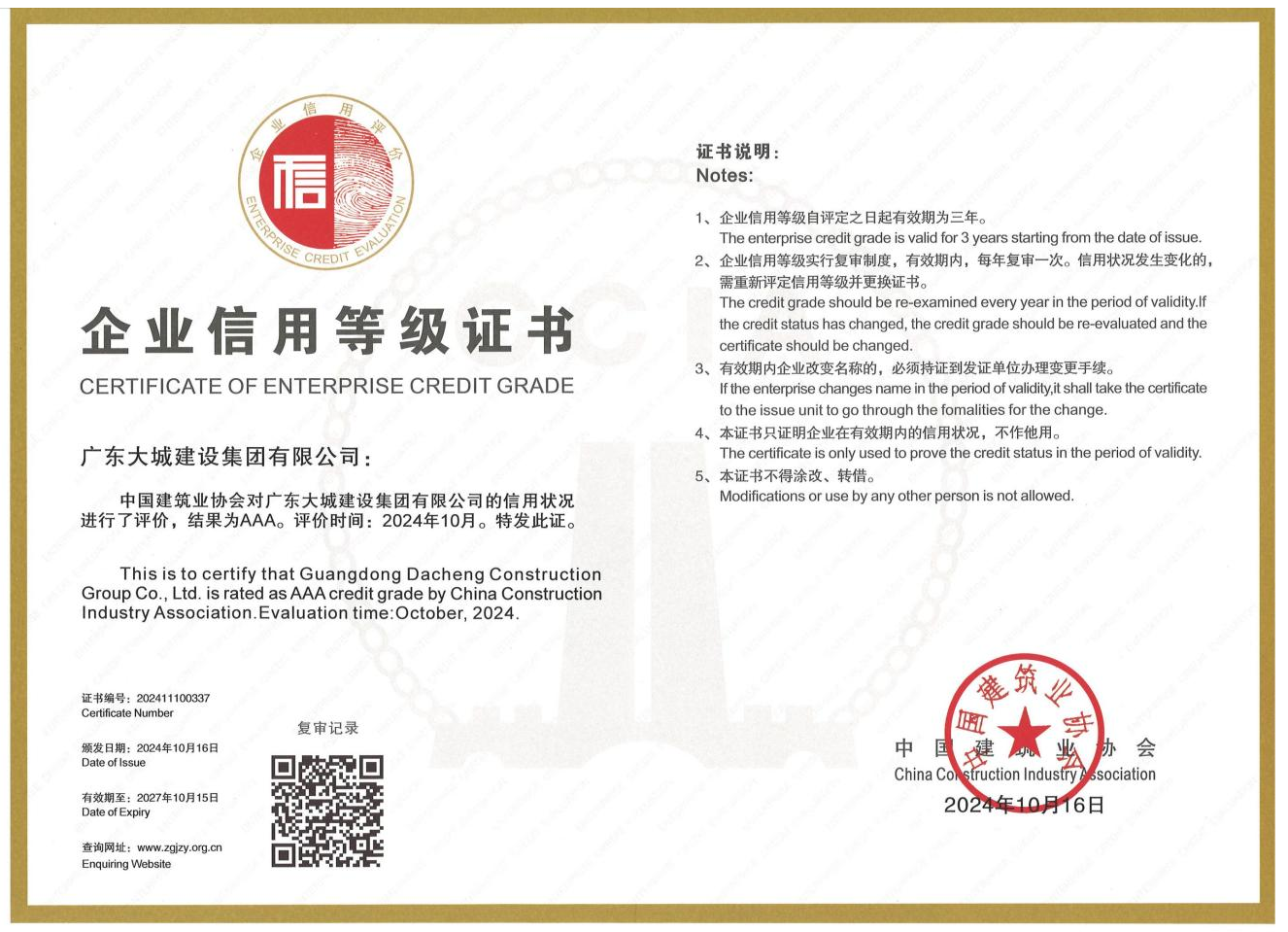 我司榮獲全國(guó)“建筑業(yè)AAA級(jí)信用企業(yè)”稱號(hào)